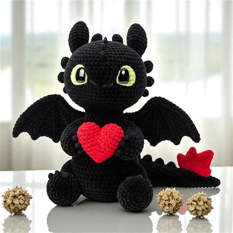 Crochet Toothless Dragon Plush, Night Fury Amigurumi With Heart
