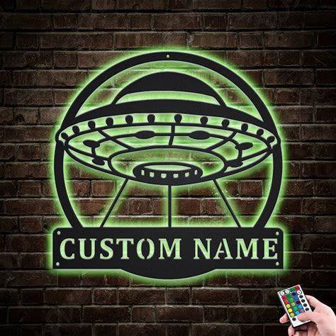 Ufos Alien Metal Wall Art LED Lights V1, Custom UFO Metal Sign, Spaceship Neon Metal Wall Decor, Ufo Neon Wall Hanging
