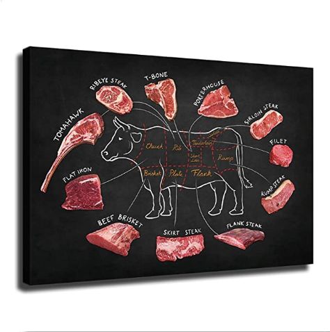 Beef Butcher Guide Poster Canvas Food Wall Art Of Beef Cuts Division Chart Meat Art Prints Framed Food Picture Decor Kitchen Modern Diagram Knowledge
