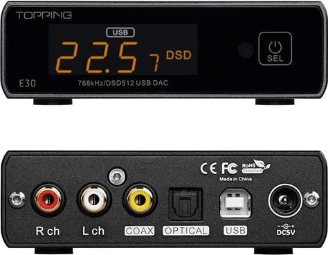 Topping E30 Mini Stereo DAC Hifi AK4493 Coaxial Optical Fiber USB Input Converter 32Bit/768Khz DSD512 Decoder For Home Theater Game Music Black