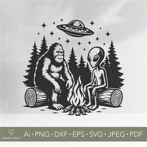 Bigfoot And Alien Campfire SVG: Funny UFO Vector Art (Digital Svg)