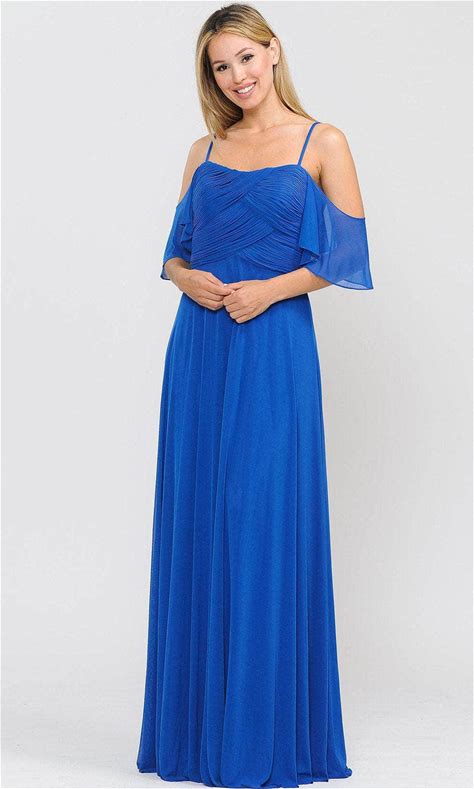 Poly USA 8552 - Flutter Sleeves Flowy Formal Dress M / Royal - Shop Poly USA Dresses On Couture Candy At Couturecandy.Com