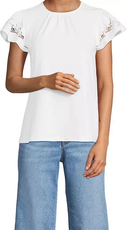 Women's Lands' End Lightweight Jersey Crew Neck Ruffle Sleeve Flowy Top, Size: Large, White
