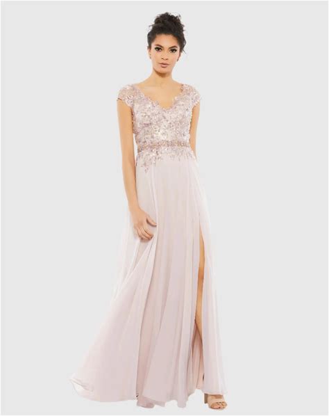 Mac Duggal - Pink Embellished Cap Sleeve Bodice Flowy Gown - US 20