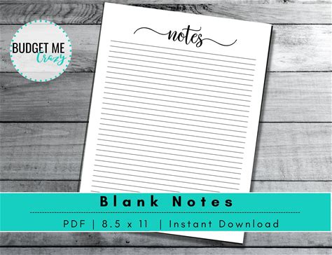 Lined Note Paper, Notes Page Planner, Printable Stationery Paper- US Letter 8.5" X 11", Digital Download