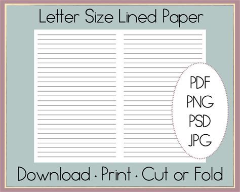 Lined Paper Digital | Lined Paper Printable | Lined Pages Download | Letter Size Pages | Foldable Journal Pages | 8.5 X 11 Notebook Pages