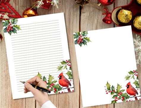 Christmas Cardinal Printable Writing Paper: Lined & Unlined (PDF Download