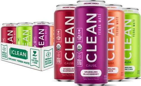 CLEAN Cause Low Calorie Variety Pack Yerba Mate Tea Sparkling, USDA Organic Energy Drink Alternative, Low Sugar, 160Mg Natural Caffeine, Soda