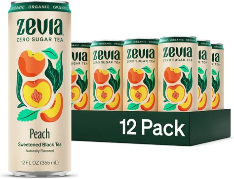 Zevia Zero Sugar Tea, Black Tea With Peach, 12 Oz Cans (12-Pack) - Naturally Sweetened, Zero Calorie Sugar Free - Non-GMO Project Verified,