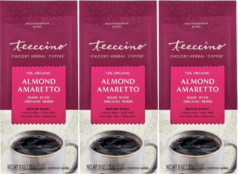 Teeccino Almond Amaretto Chicory Coffee Alternative - Ground Herbal Coffee Thats Prebiotic, Caffeine Free & Acid Free, Medium Roast, 11 Ounce (Pack